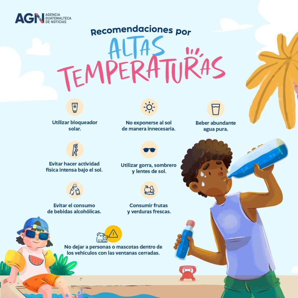Dentro de su pronóstico el Insivumeh alerta por la posibilidad de incendios forestales derivados de las altas temperaturas. Durante las últimas horas, el Ministerio de Salud también ha hecho llamados para prever los efectos del calor y ha hecho recomendaciones para evitar golpes de calor.