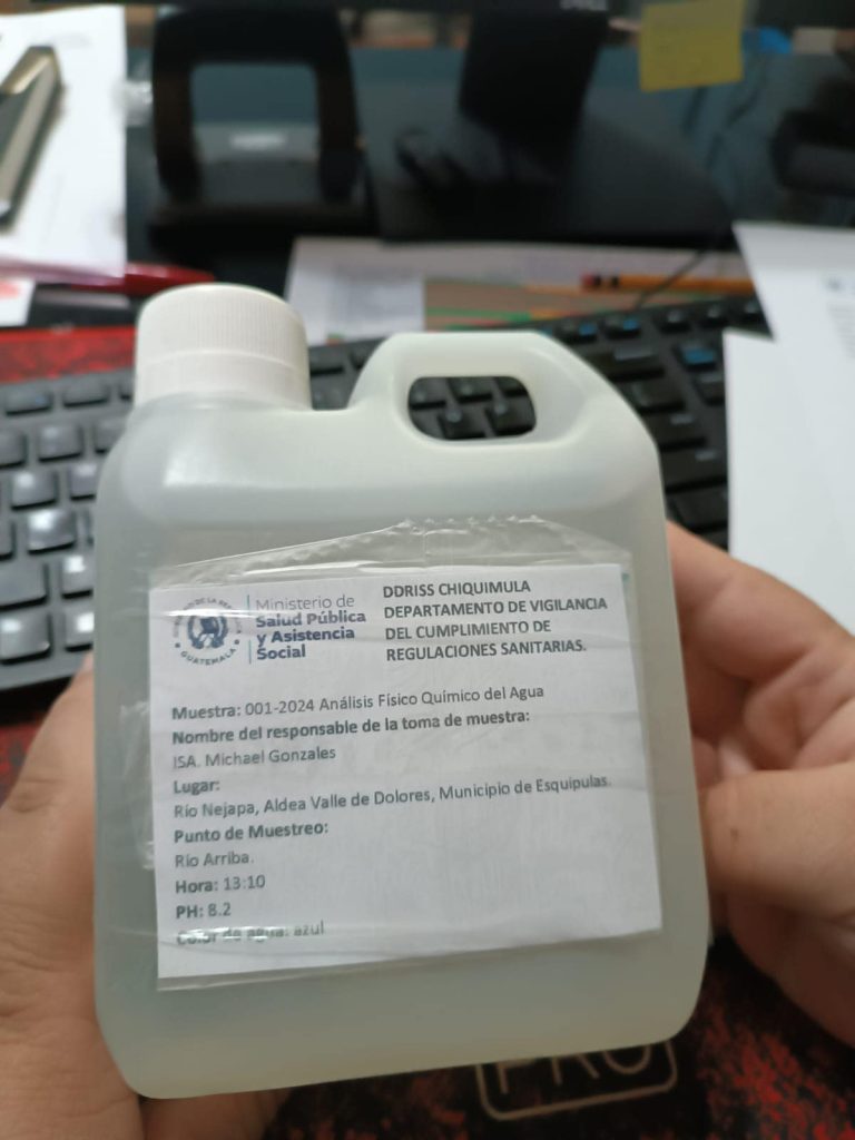 El Ministerio de Salud Pública y Asistencia Social recomienda a la población de la aldea Valle de Dolores, Esquipulas Chiquimula no consumir agua del río Nejapa, donde personal de salud han tomado muestras y enviado a Laboratorio CUNORI