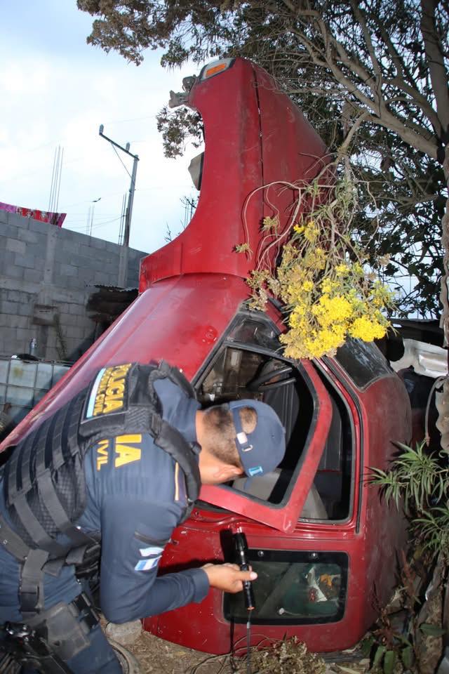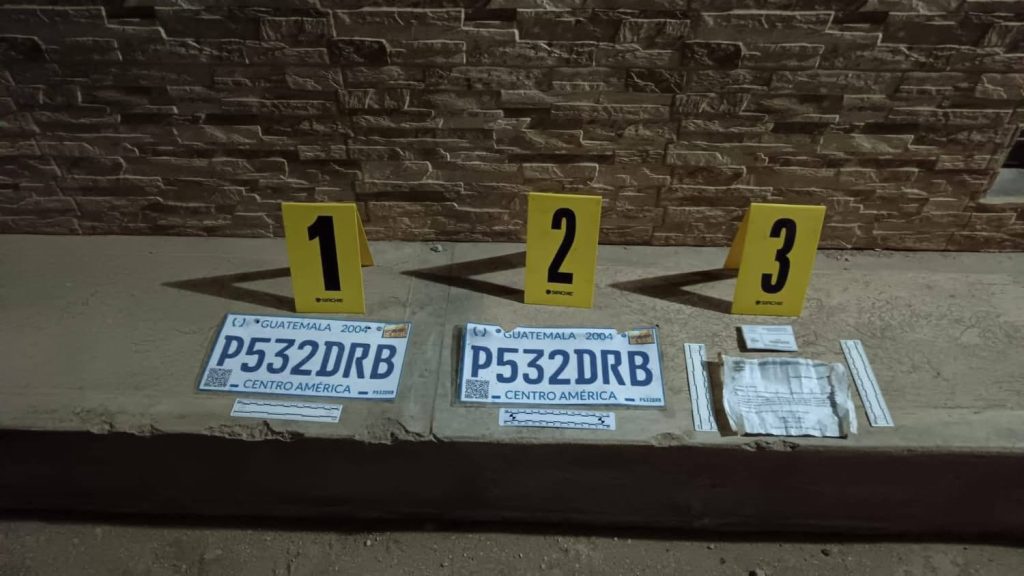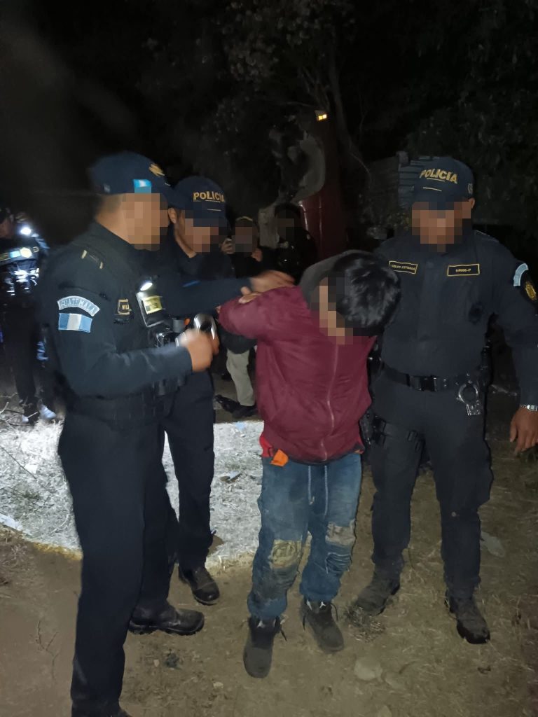 En el lugar fueron detenidos Luis Enrique Pérez Baquín, 21 años, quien se encontraba escondido debajo de un vehículo e intento darse a la fuga y Anderson 24 años, que además tiene una orden de captura por el delito de responsabilidad de conductores de fecha 17 de mayo del 2024, en un juzgado de Chimaltenango, esta persona tiene tres antecedentes por uso de documentos falsificados, hurto agravado y falsificación de placas y de distintivos para vehículos en el año 2022.