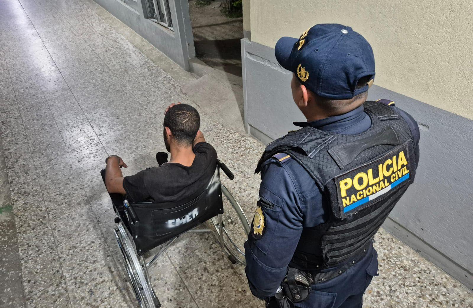En su intento por evadir a la PNC, subió al techo de un inmueble, pero cayó y sufrió lesiones en ambas piernas.