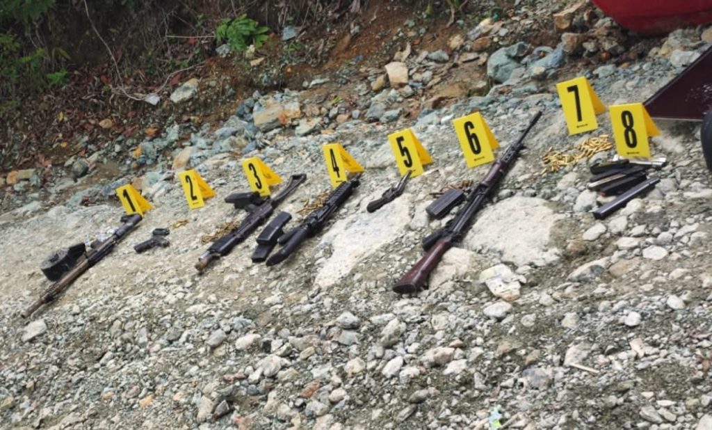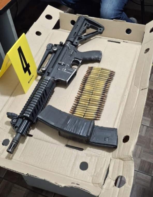 Todas las armas tienen registro esmerilado, se incautan también grilletes, radios transmisores, celulares, una mochila, una almágana y un caimán.