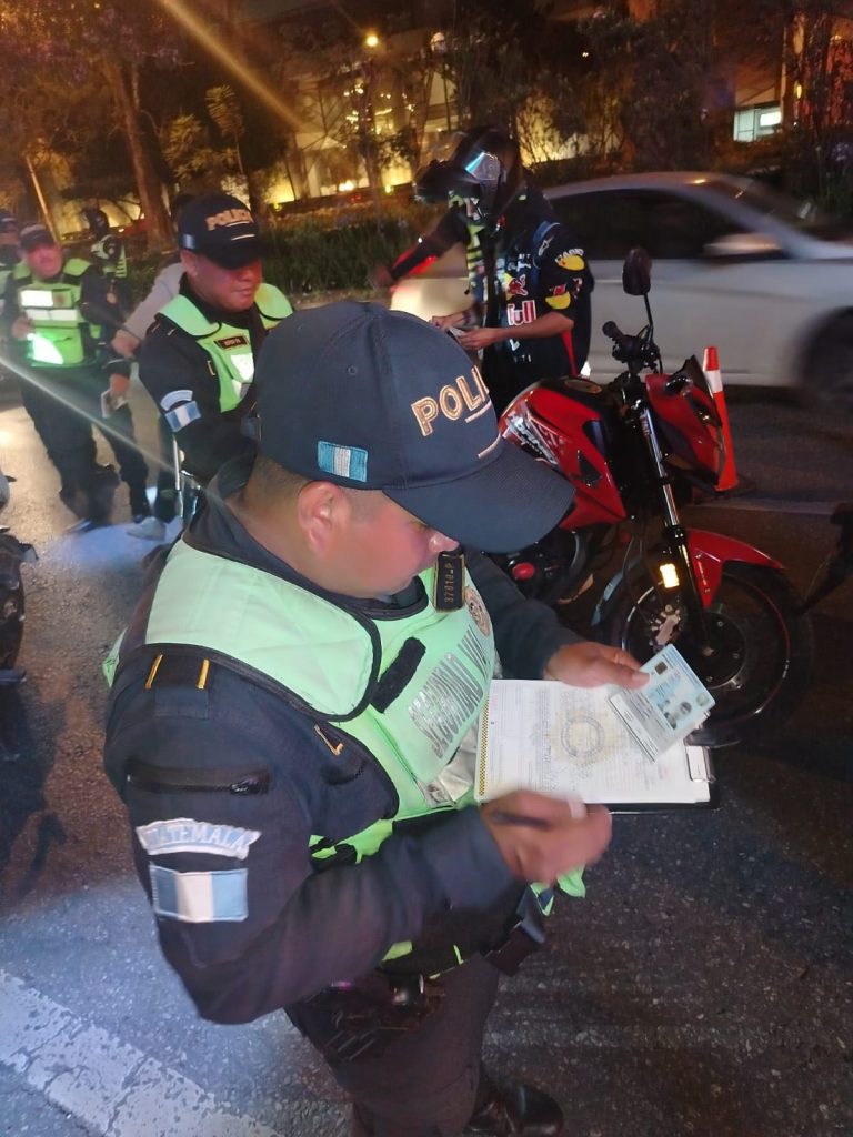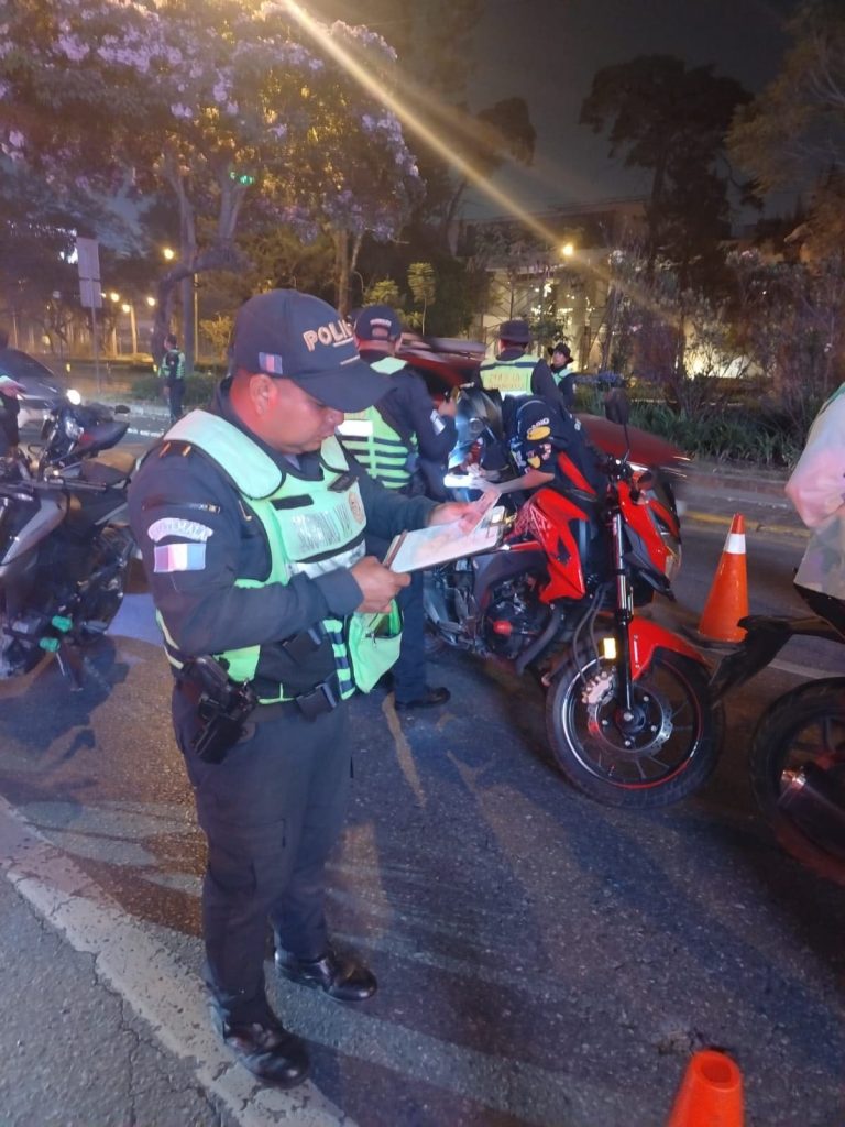 La PNC realizó un operativo con más de 100 agentes, detuvieron y revisaron documentación de los motoristas e impusieron varias multas por diversas faltas al Reglamento de Tránsito.
