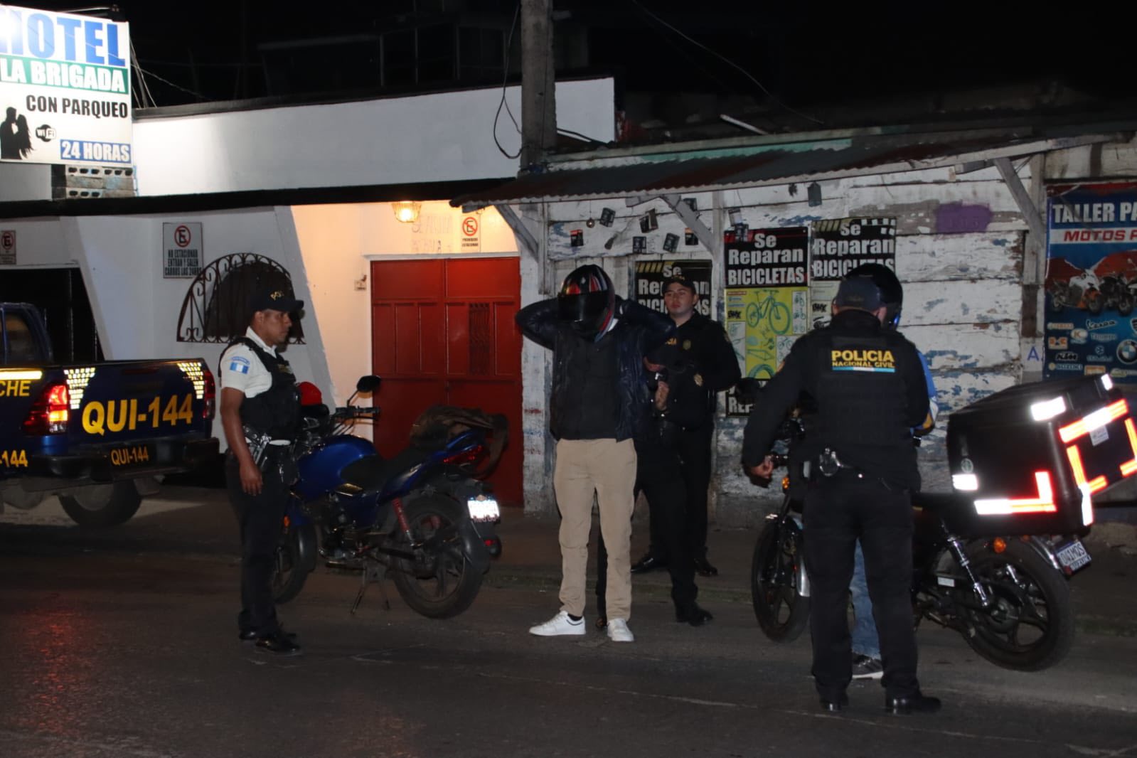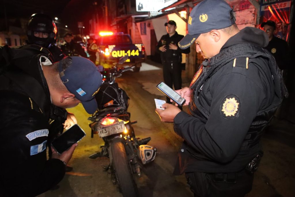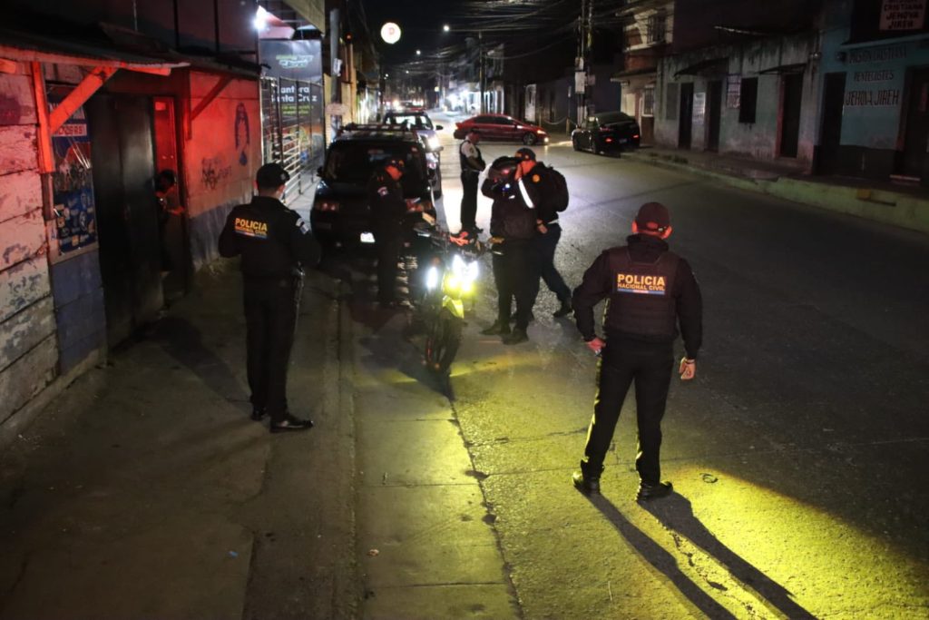 Agentes de la Policía Nacional Civil PNC de la comisaría 16 desarrollan operativos nocturnos en distintos sectores de Mixco. Las acciones se llevan a cabo de forma simultánea en las colonias El Milagro, La Florida y La Brigada, como parte de las estrategias para prevenir hechos delictivos.