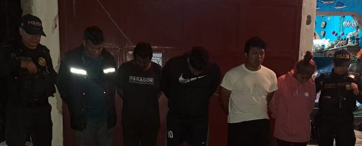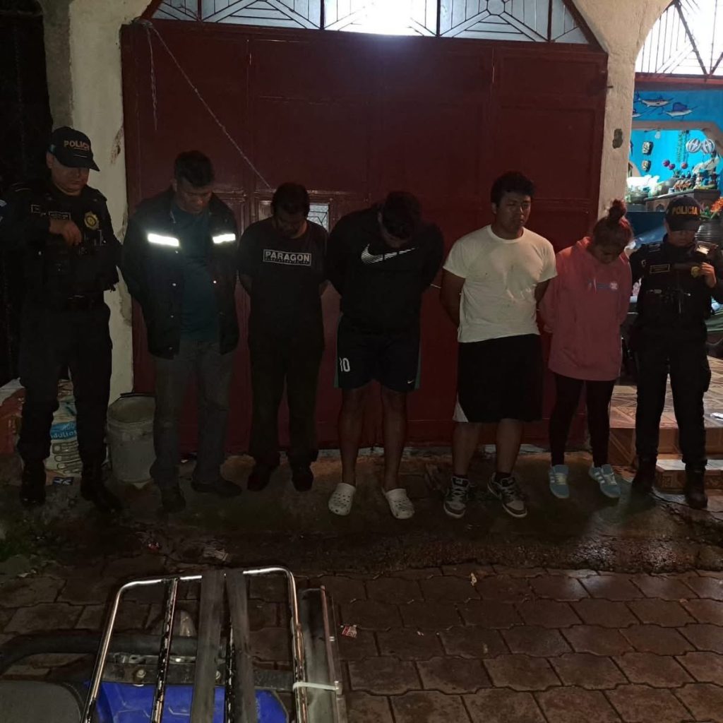 Los detenidos fueron identificados como Yaneli Paola Cortez Barrientos de 18 años alias “La Pelirroja” , Héctor Antonio Perez de 40 años alias “Conejo”, Cristian Emanuel Juárez Vásquez de 20 años alias “El Pingüino” , Edwin Giovanni Muñoz Mulul de 49 años alias “peluca” y Jeferson Esteban Reyes Gómez de 18 años alias «Chalanita».