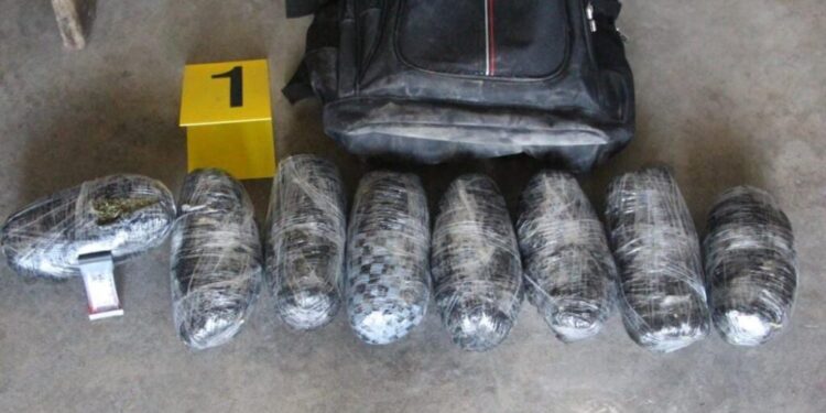 En el kilómetro 387 ruta CA-13, Machaquilá, Poptún, Petén, agentes de la PNC detuvieron a una pareja cuando se conducían en una motocicleta. Ahí localizaron ocho paquetes con marihuana, confirmaron agentes de la Subdirección General de Análisis de Información Antinarcótica (SGAIA).