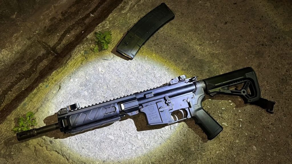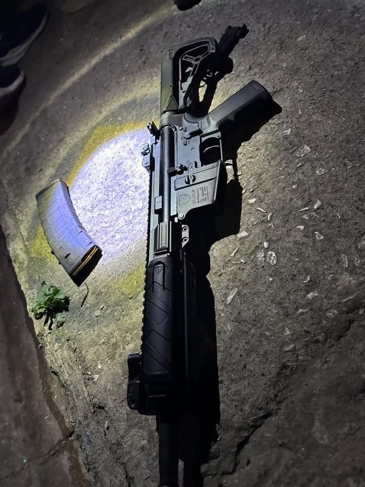 En el interior del vehículo se encuentra la licencia conducir del fallecido así como varios casquillos. A un costado del cuerpo se localizó una carabina marca Silver Shadow, calibre .223 con una tolva.