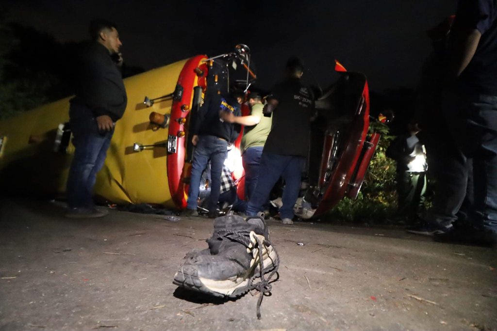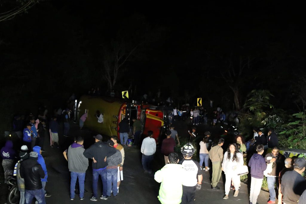 Bomberos Voluntarios atienden y trasladan a pasajeros heridos producto de este percance vial y varios son trasladados a la emergencia del hospital San Juan de Dios