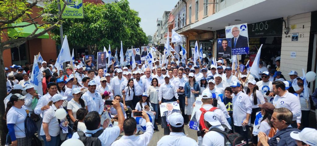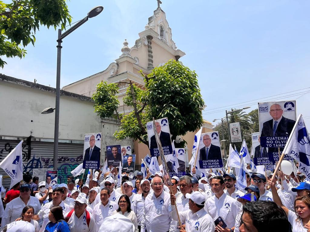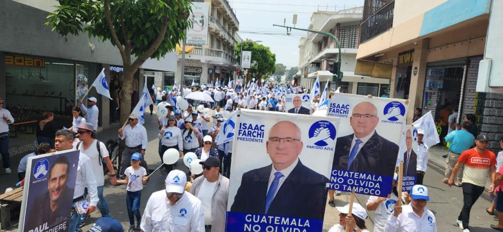 EN LA CAPITAL…El presidenciable del partido AZUL, Isaac Farchi , acompañados de candidatos a diputados del distrito central llevaron a cabo la mañana de este sábado una caminata por la sexta avenida de la zona 1 y el parque de la constitución.