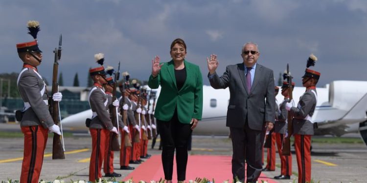 Xiomara Castro, presidenta de Honduras, arribó a la Fuerza Aérea Guatemalteca (FAG), con la finalidad de sostener reunión con el presidente Bernardo Arévalo. A su llegada, el titular del Ministerio de Relaciones Exteriores (Minex), Ramiro Martínez, encabezó la comitiva que dio la bienvenida.