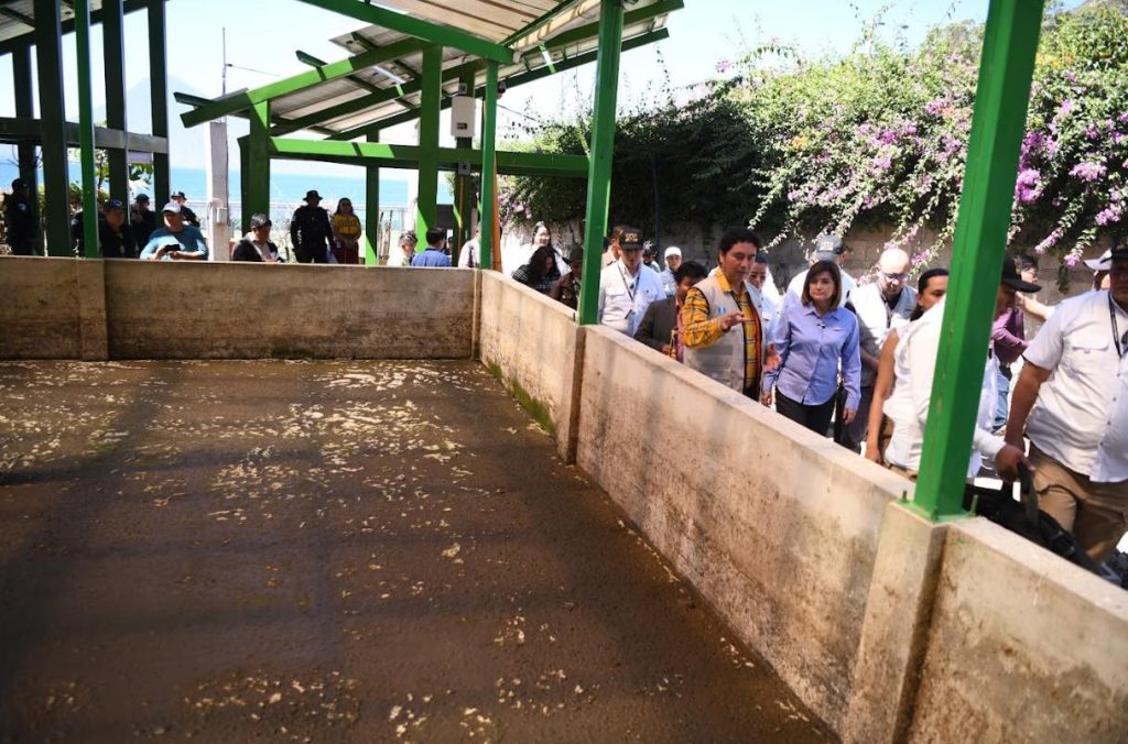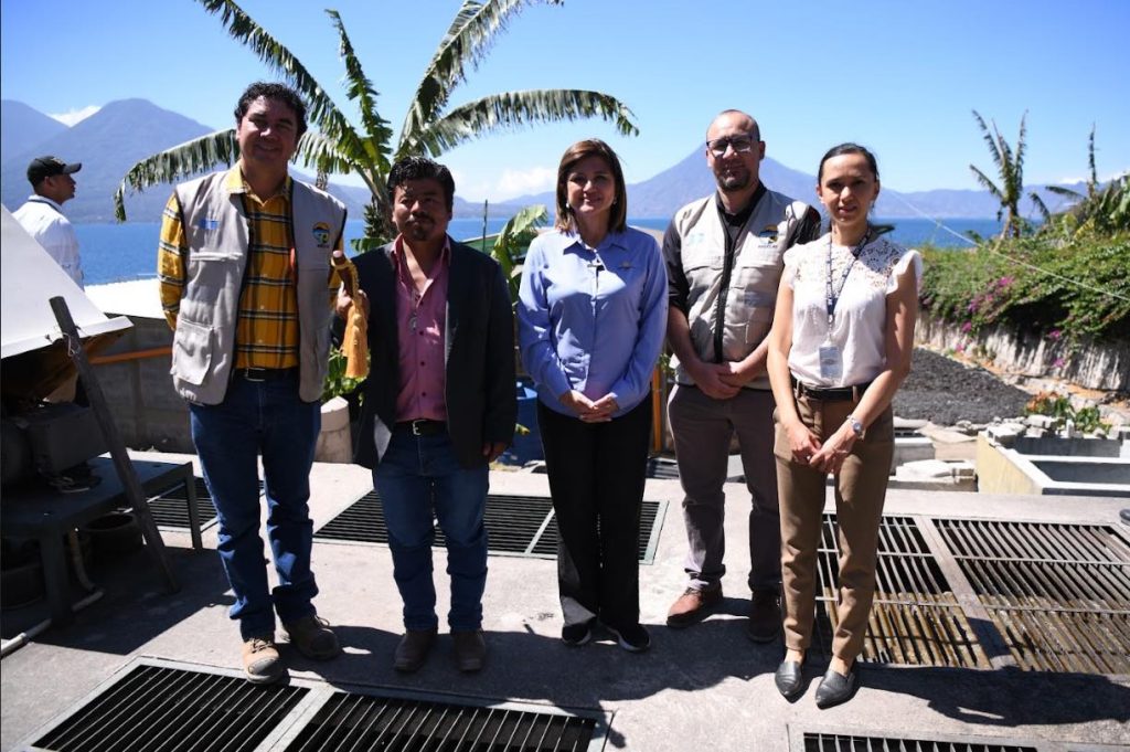 En su visita al municipio de Santa Catarina Palopó, la presidenta en funciones, Karin Herrera, recorrió también las instalaciones de la planta de tratamiento de aguas residuales en alrededores del lago de Atitlán.