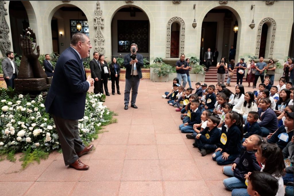 Con una sonrisa, el presidente expresó a los estudiantes Bienvenidos al Palacio. ¿Les gust, y saben de quien es el Palacio? El Palacio es de ustedes, del pueblo, de Guatemala.