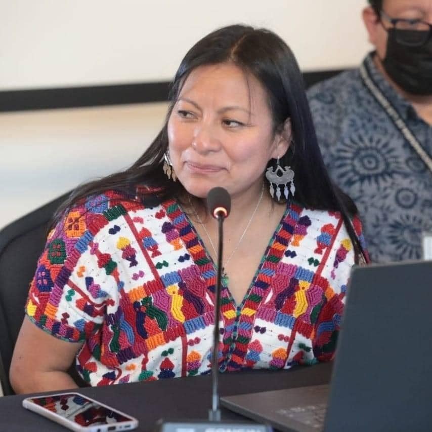 Titular: Delfina Celestina García Reyes / Licenciada en Trabajo Social. Lideresa Maya K’iché’ con experiencia en temas con enfoque de pueblos indígenas.