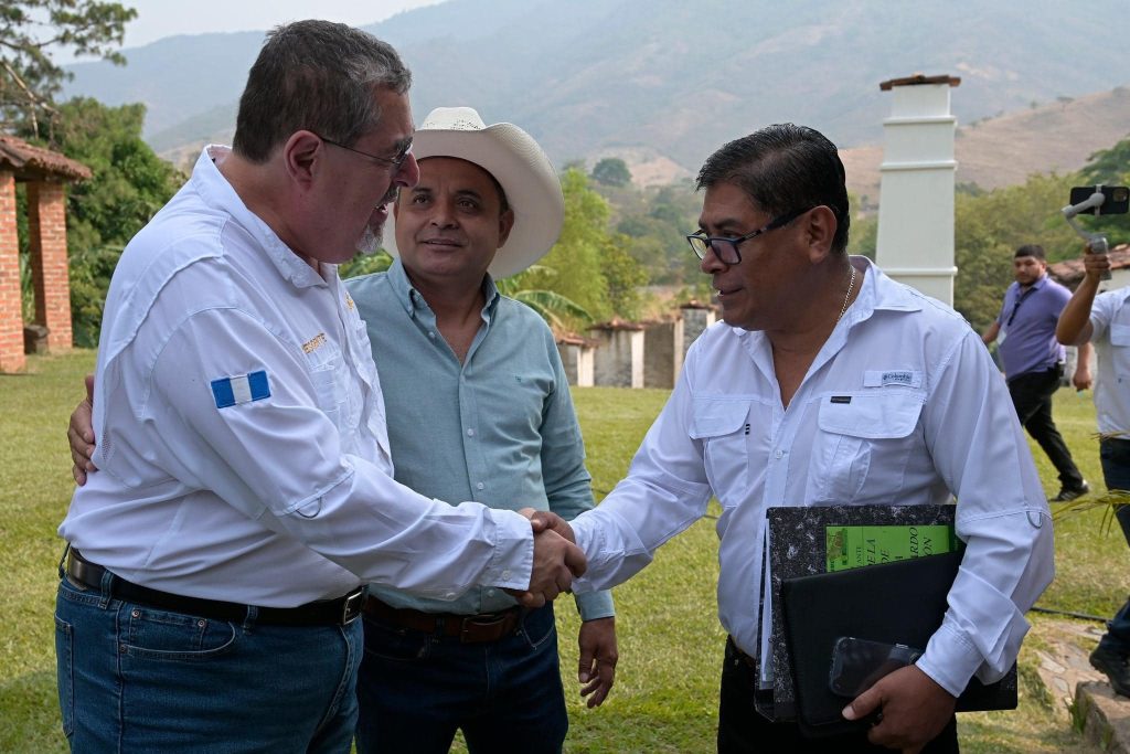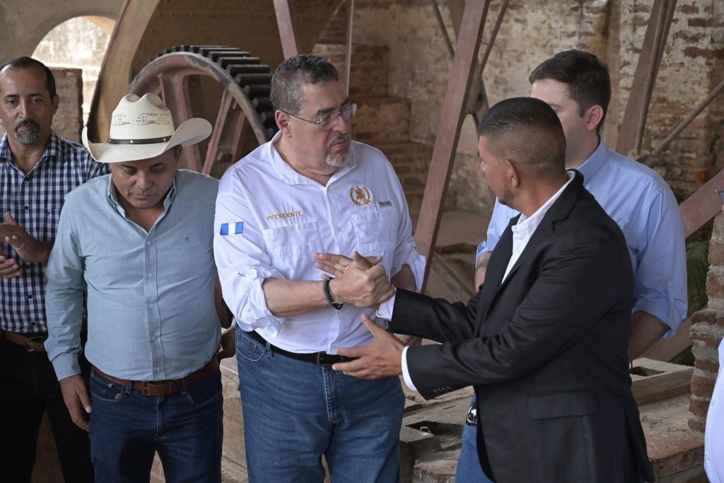 El presidente Arévalo junto con Ana Glenda Tager, secretaria privada de la Presidencia y autoridades de la Anam encabezadas por Sebastián Siero y del Infom fue recibido por el grupo de alcaldes, en el Museo El Trapiche, ubicado en San Jerónimo, Baja Verapaz. En este lugar se asentaron los primeros frailes franciscanos y se obtuvo la primera producción de azúcar morena a nivel nacional y de Centroamérica en 1591.