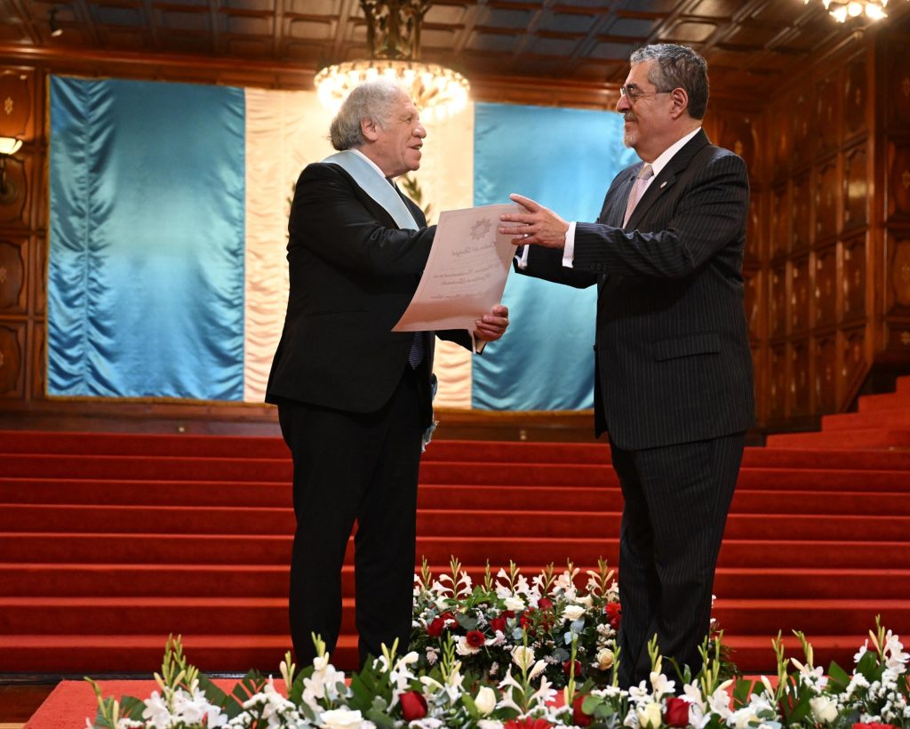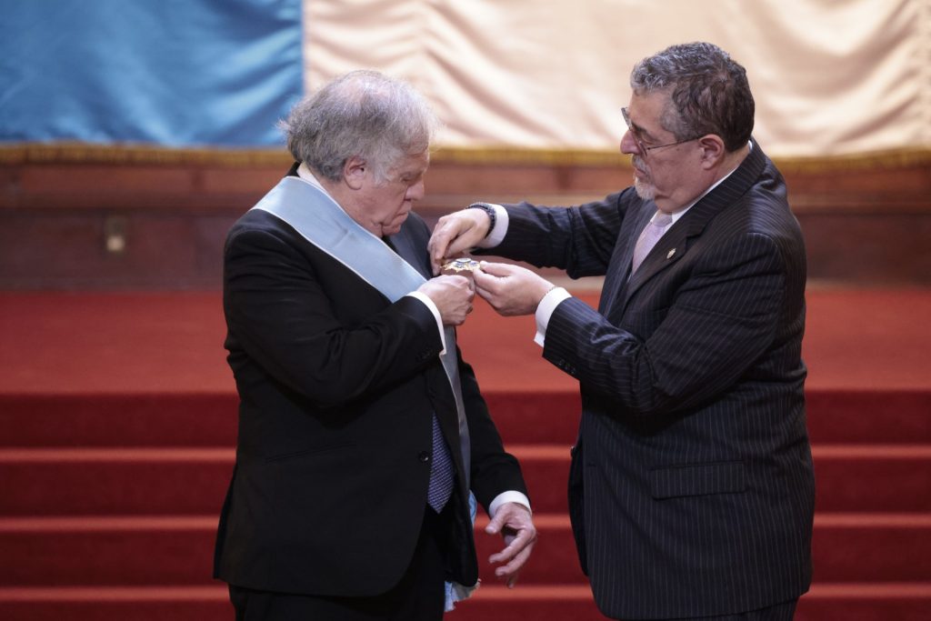 El presidente Bernardo Arévalo otorgó este viernes la Orden del Quetzal en Grado de Gran Cruz al secretario general de la Organización de los Estados Americanos (OEA), Luis Almagro, por su apoyo en la defensa de la democracia en Guatemala.