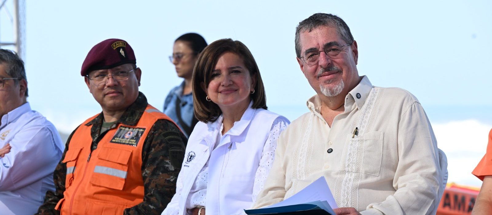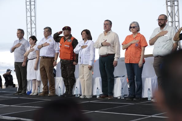 El presidente Bernardo Arévalo y la vicepresidenta Karin Herrera, junto a miembros del gabinete de gobierno inauguraron este viernes el Sistema Nacional de Prevención en Semana Santa (Sinaprese) 2025 en El Paredón, departamento de Escuintla, destino turístico de mayor crecimiento en el país.