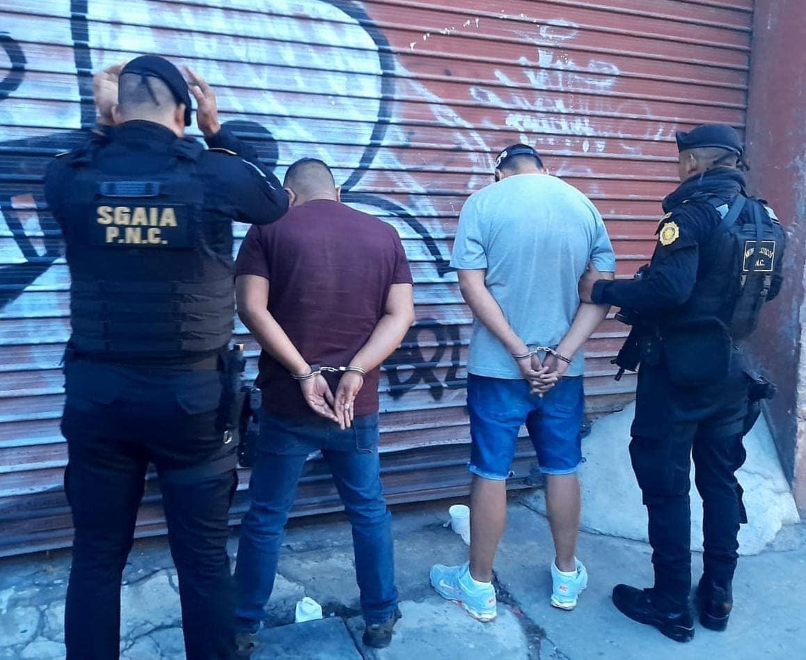 Agentes de la fuerza antinarcóticos SGAIA de la Policía Nacional Civil PNC , capturaron a Walter Barrondo Muñoz y Selvin Muñoz Ovando, en la zona 6 capitalina.