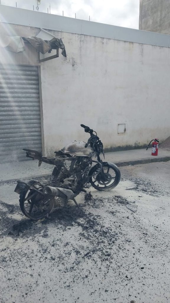 A los detenidos se les decomisa una pistola con una tolva, 17 municiones y dos celulares. En el lugar quedó la motocicleta de estos individuos, la que fue incinerada por los vecinos.