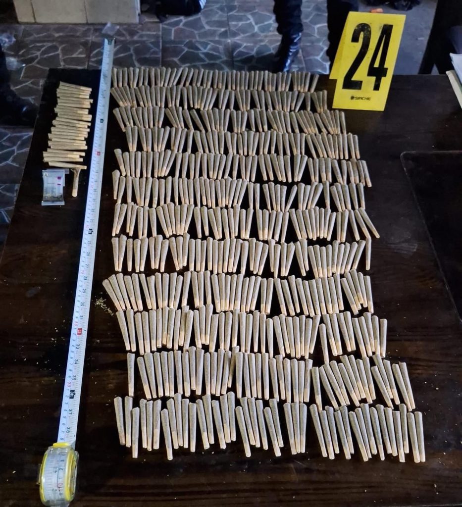 Durante el allanamiento se localizaron dos pistolas calibre 9mm. 4 cargadores y 35 municiones, que tenían de manera ilegal, 185 piedras de crack, 505 envoltorios y de marihuana, media libra de dicha droga, 20 “colmillos” con cocaína, 362 tubos de plástico vacíos, para cocaína, 5 pesas electrónicas, cuadernos para apuntes, documentos de identificación, Q.163,535.50, máscaras, una motocicleta sin placa, marca Italika, con reporte de robo de fecha 14 de mayo, a mano armada, en Cuatro Caminos, San Sebastián, Retalhuleu y se procedió al secuestro de un vehículo y 5 celulares que servirán para continuar con la investigación.