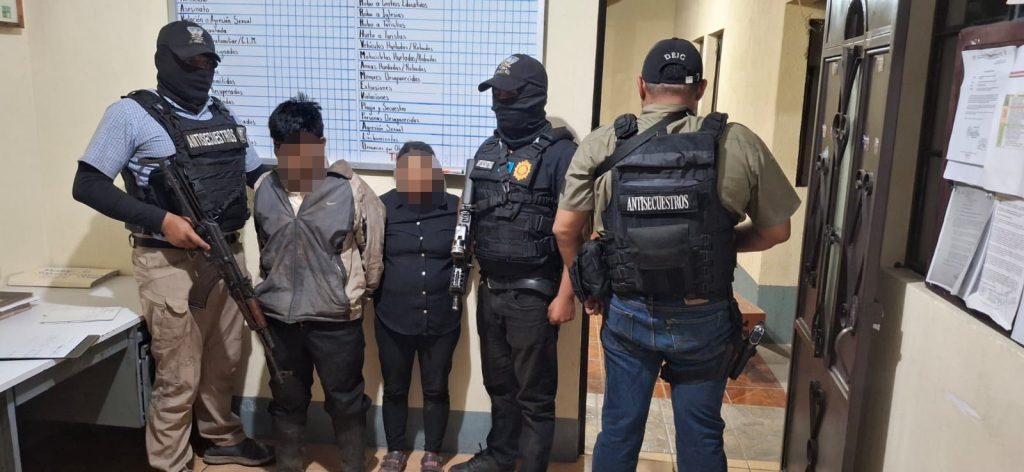 En un operativo táctico y de inteligencia por parte del Comandos Antisecuestros de la Policía Nacional Civil PNC y fiscales del Ministerio Publico MP, en el kilómetro 102, entrada al caserío Patzaj, San Antonio Palopó, Sololá, capturaron a Juan Luciano Sicaján Chuc, de 48 años y a Florinda Can Aju de 49 años, presuntos responsables del secuestro de un menor de 14 años, por quien exigían Q 500,000 a cambio de su liberación.
