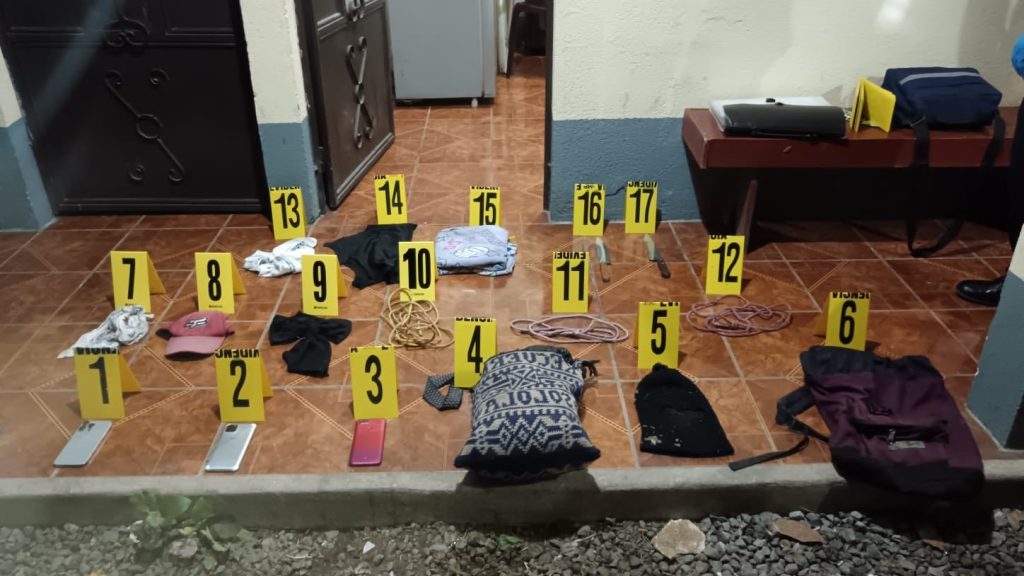 Juan tiene una orden de captura por negación de asistencia económica, de fecha 13 de mayo del 2021. Se les incautaron gorros pasamontañas, mochilas, lazos, dos cuchillos, pañuelos y tres teléfonos desde donde se presume que exigían el dinero.