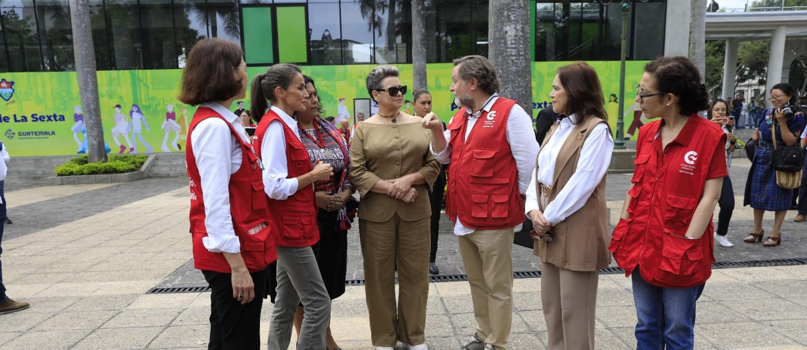 Luego de una serie de reuniones de cooperación en el Palacio Nacional de la Cultura, la primera dama de la Nación, doctora Lucrecia Peinado, junto a la reina Letizia de España, caminaron por la Sexta avenida de la zona 1.