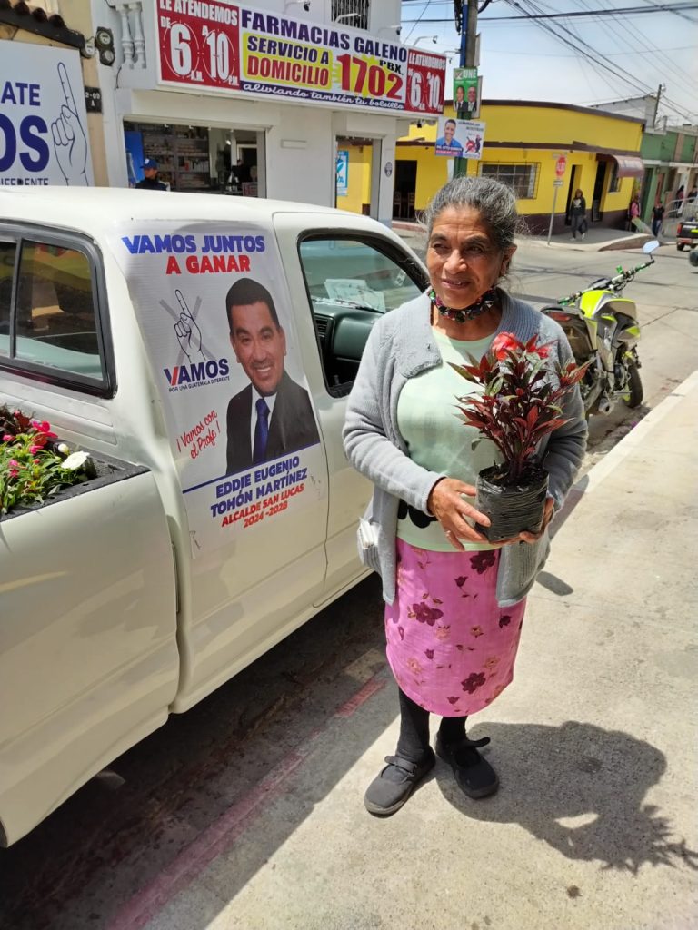 El profesor Eddie Tohon, candidato a alcalde por el partido VAMOS, continúa fortaleciéndose en San Lucas Sacatepéquez perfilándose con paso firme para tomar la vara edil en este municipio y casa por casa visita a los vecinos de esta localidad, dando a conocer su programa de gobierno y pidiendo el voto para darle ya el cambio que se requiere para el desarrollo de esta localidad.