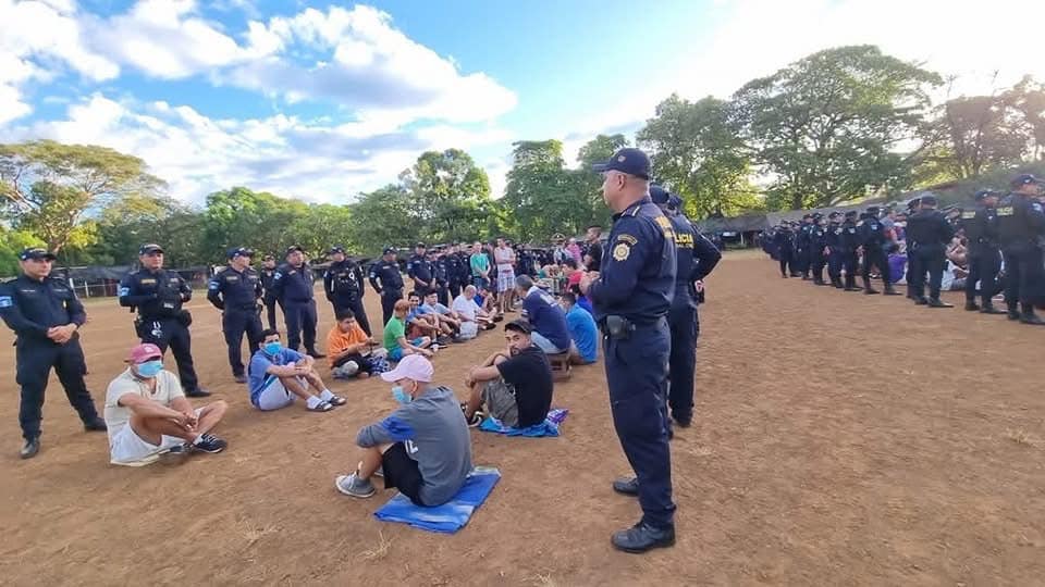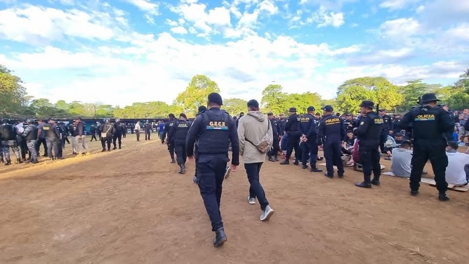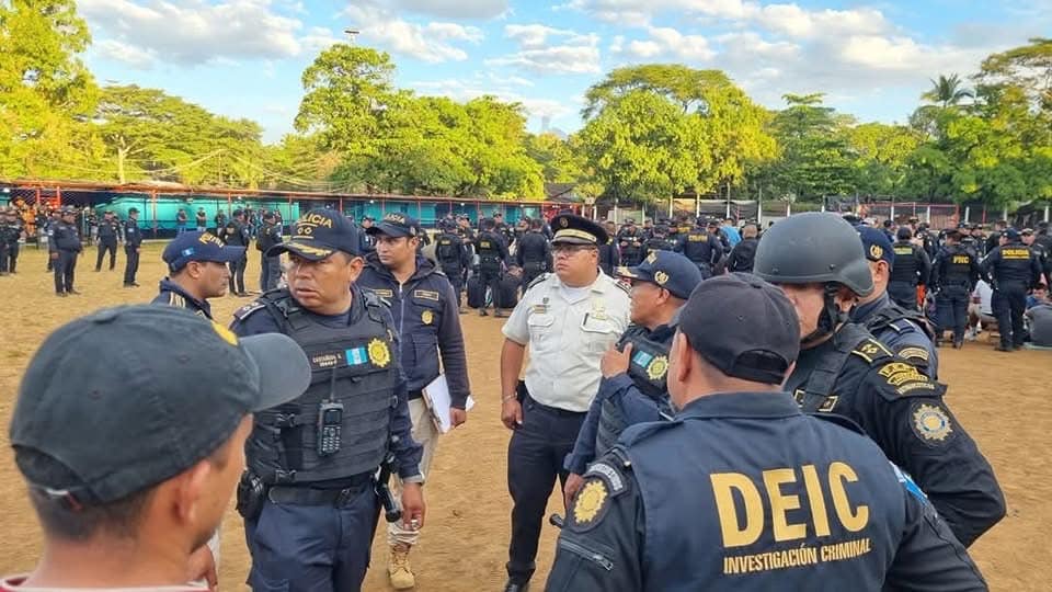 Agentes de la Policía Nacional Civil PNC de diferentes comisarías y unidades especializadas, en apoyo al Sistema Penitenciario, llevan a cabo esta mañana una requisa en La Granja Modelo de Rehabilitación Canadá, Escuintla, con el objetivo de buscar armas de fuego, teléfonos, drogas u otro ilícito.