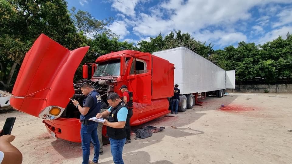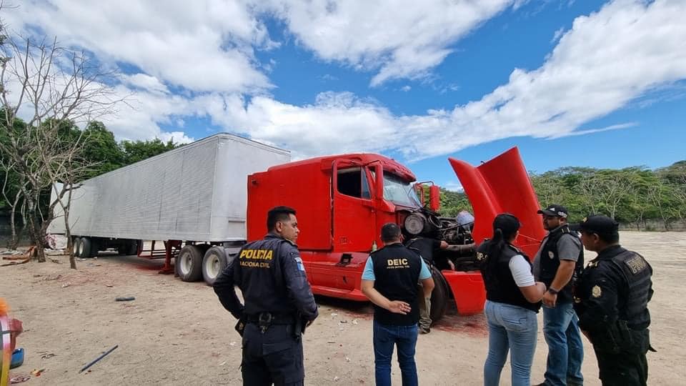 Según se estableció, este transporte pesado se dirigía de El Salvador hacia Honduras, y el 1 de este mes, en Palín, fue robado por individuos armados; y hoy que se localizó el cabezal, ya estaba pintado de color rojo, portando la placa C-065BWC, la cual es falsa.