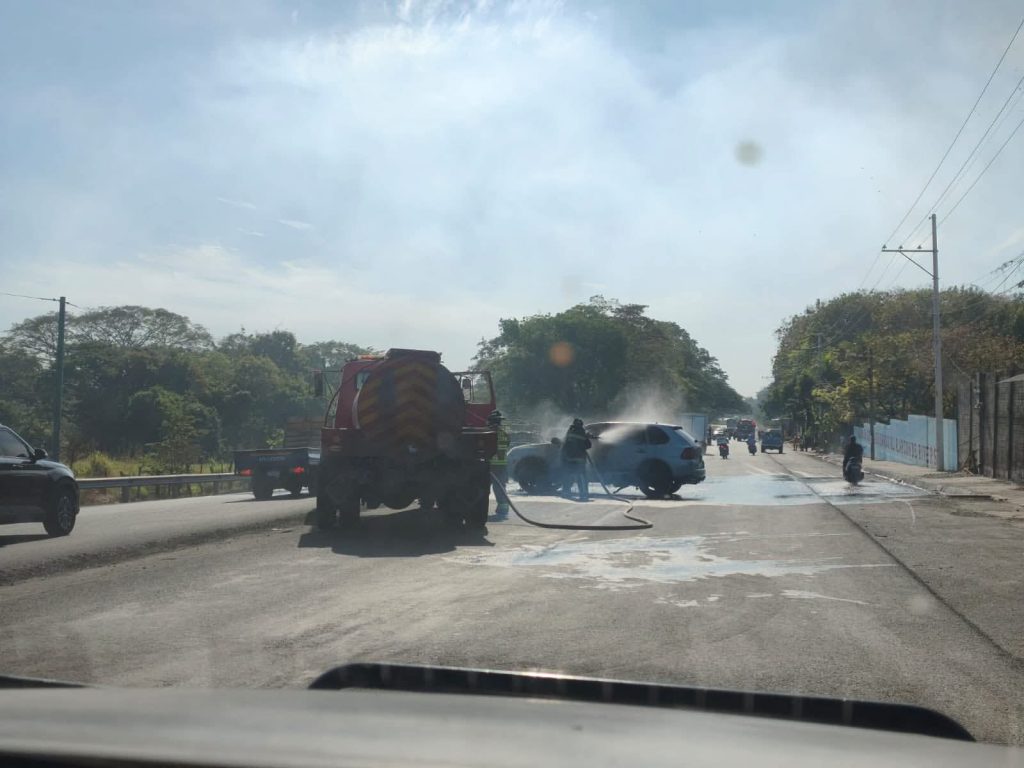 Según se supo dos sujetos que se conducían a bordo del automóvil detuvieron la marcha del vehículo repentinamente, le prendieron fueron y huyeron hacia Taxisco, lo atravesaron sobre la ruta para impedir el ingreso de las fuerzas de seguridad y fue el inicio del motín.