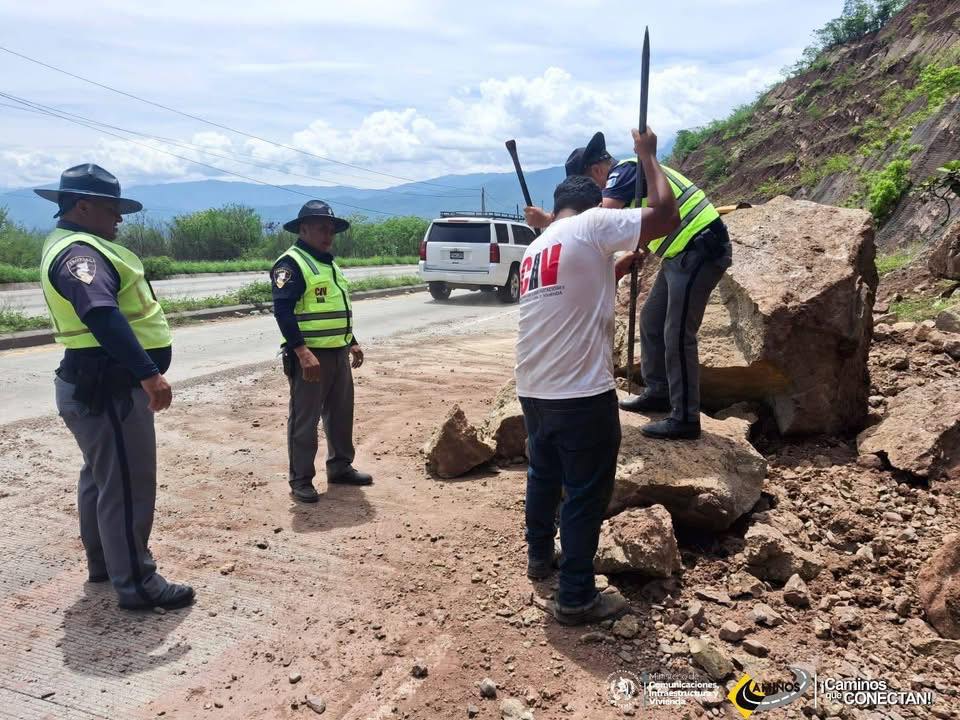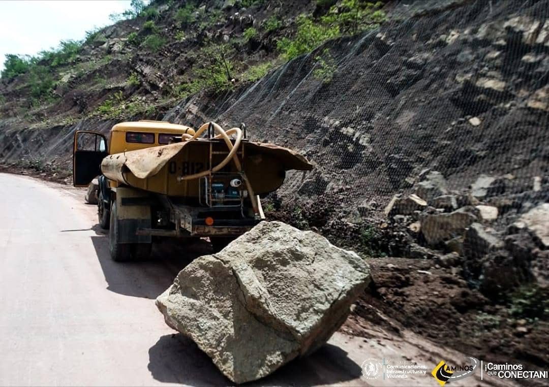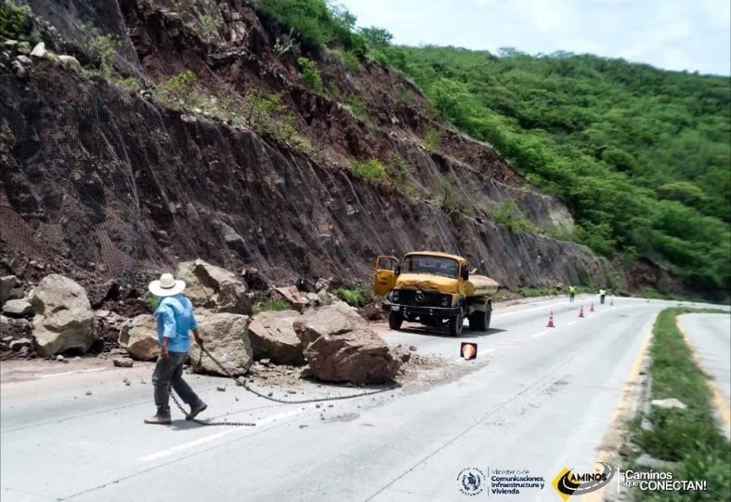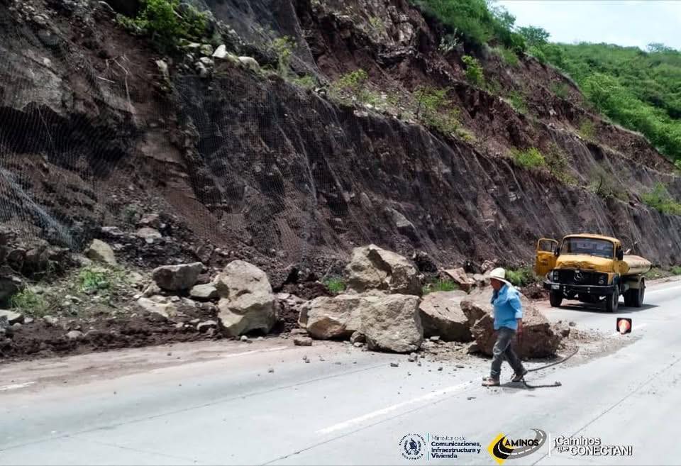 Esta tarde se realiza una remoción de rocas completada en la ruta al Atlántico en el tramo Sanarate – El Rancho, El Progreso.