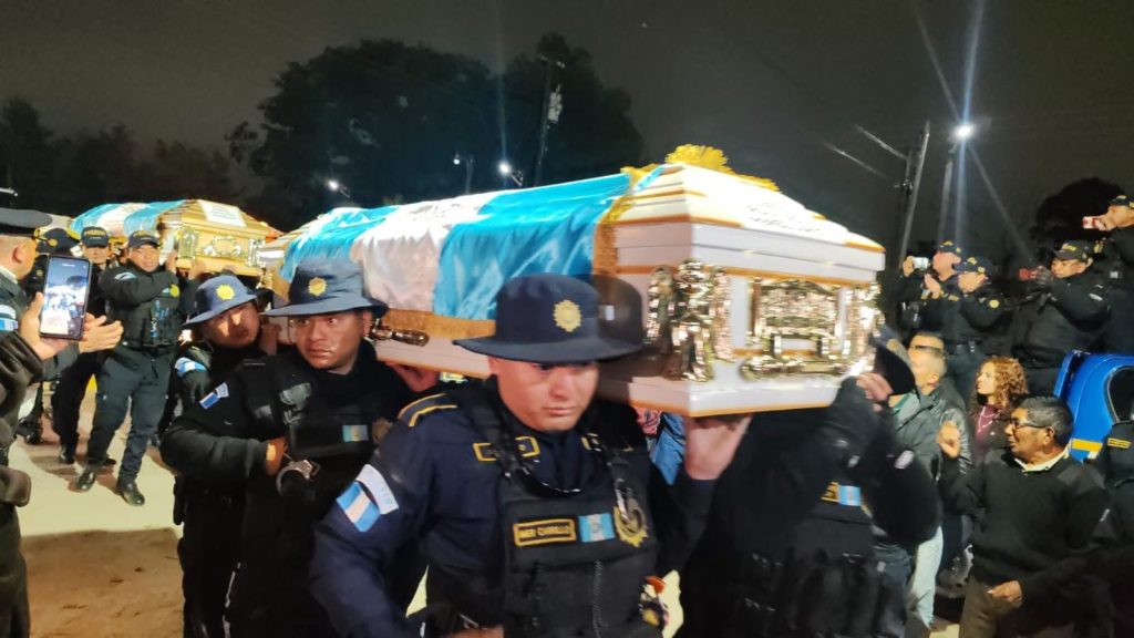En una iglesia en la zona 11 de Huehuetenango, en nombre de la comisaría 43 se llevaron a cabo las honras fúnebres a los agentes Romeo Rodolfo Pérez López, Manuel Abelardo Ruiz Lázaro, Hugo Efraín Palacios Guamuch, Marvin Josué Mauricio Villatoro y Osmar Ezequiel del Valle Argueta, que fallecieron ayer en el hecho de tránsito en San Marcos.