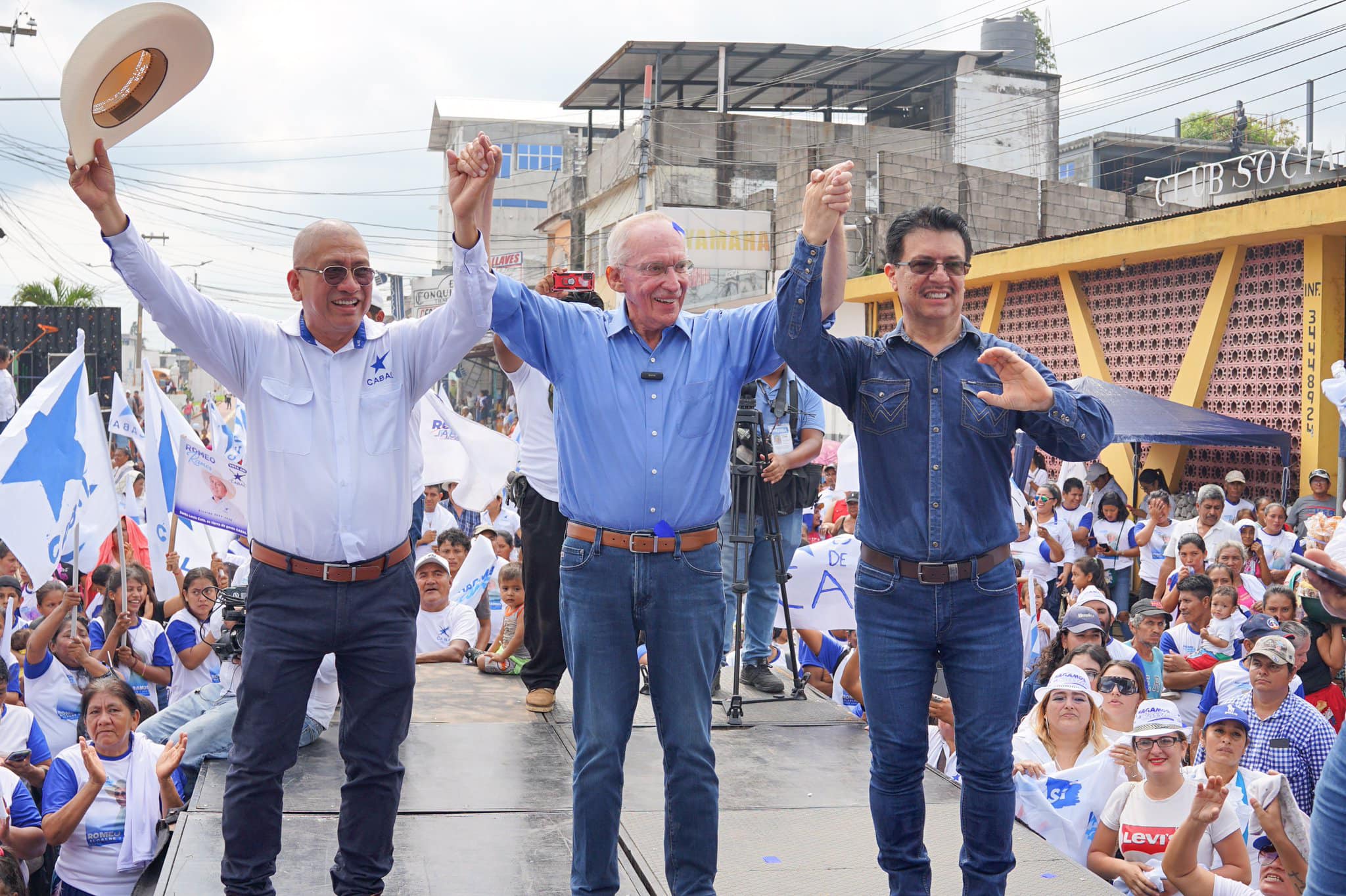 El alcalde de Santa Lucía Cotzumalguapa Romeo Ramos cerró su campaña electoral por la reelección con una carabaña que concluyó con un mitin en la que participó el candidato presidencial Edmod Mulet.