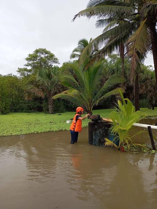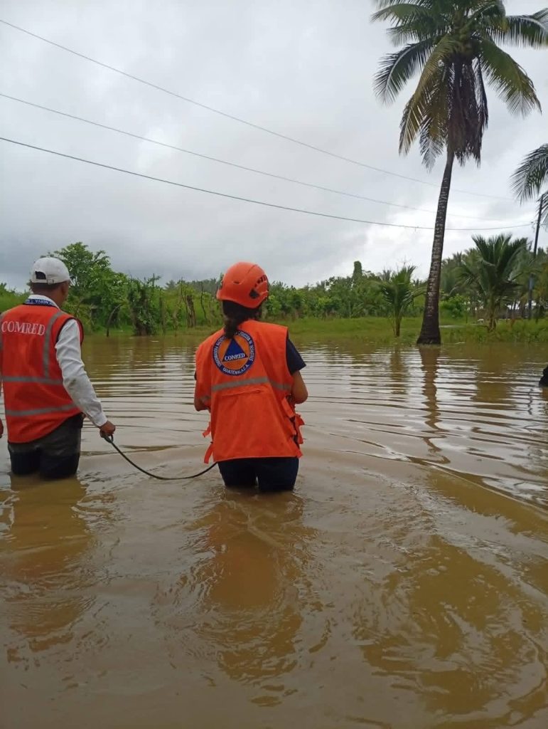 Se reporta una inundación en la aldea Barra de Coyolate, Nueva Concepción, Escuintla. El COMRED ya realiza un recorrido en el área afectada para evaluar los daños y coordinar la asistencia a las familias damnificadas.