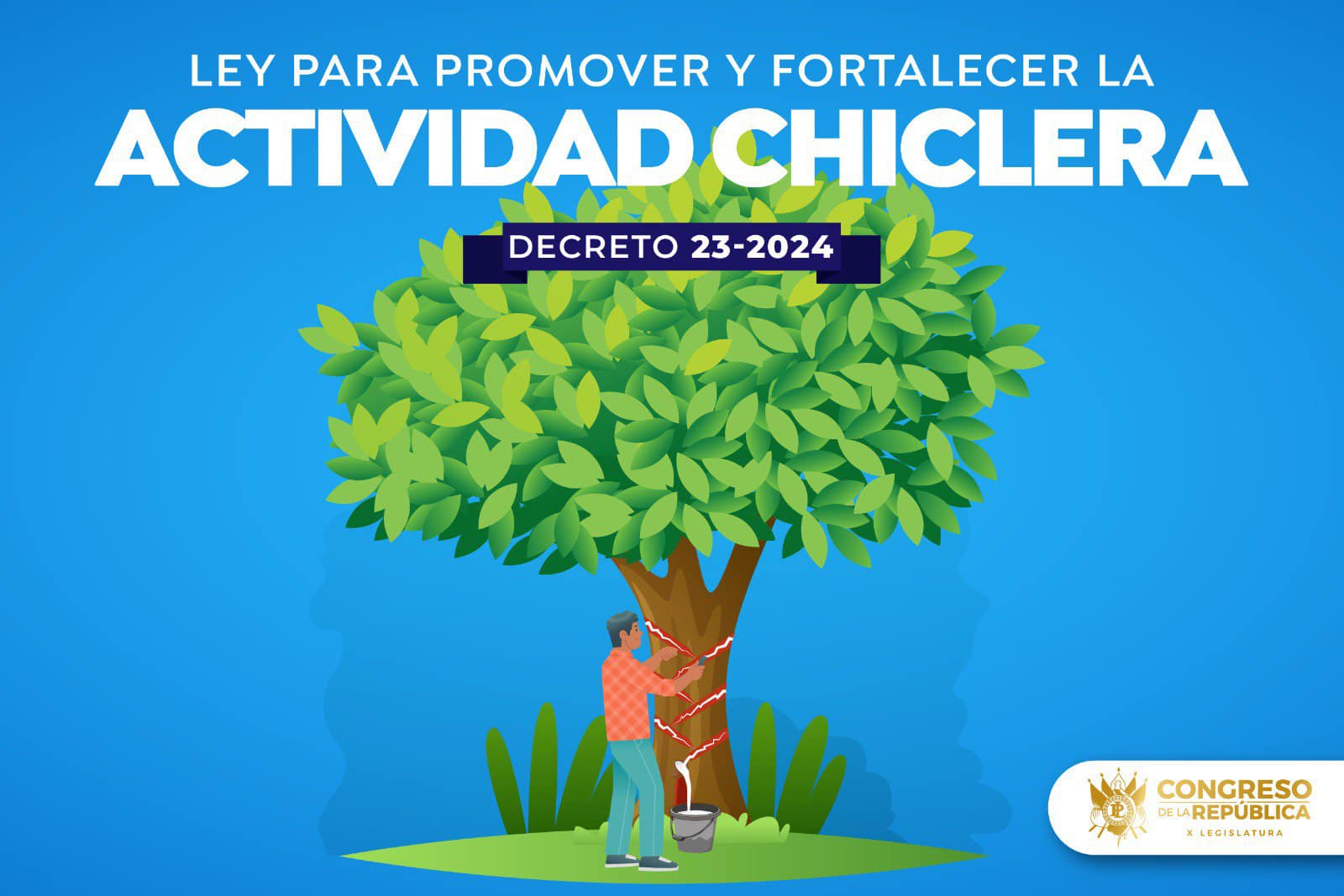 Como parte del compromiso por establecer un marco legal respecto a la libertad de industria y comercio, así como la generación de empleo para las comunidades que tienen relación en el ámbito de la actividad chiclera en el país y fuertemente en el departamento de Petén, el Congreso de la República aprobó el Decreto 23-2024, Ley para Promover y Fortalecer la Actividad Chiclera.