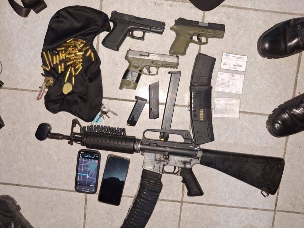 Según agentes, las descripciones provocaron una persecución logrando las detenciones, se les incautó armamento de grueso calibre, pistolas 9’mm, tolvas, más de 100 municiones, chalecos antibalas, gorras con el logotipo DEIC y dos vehículos.