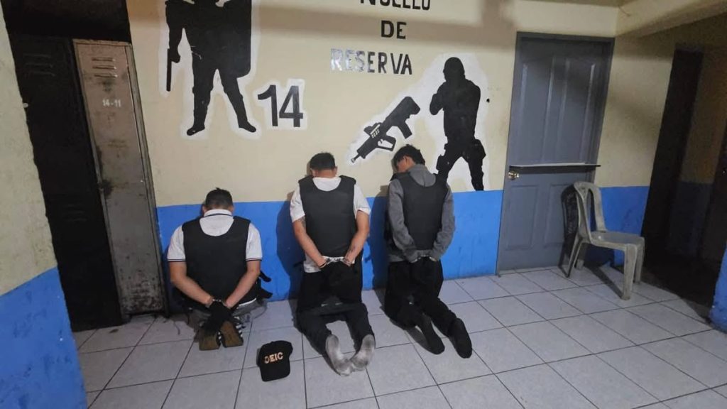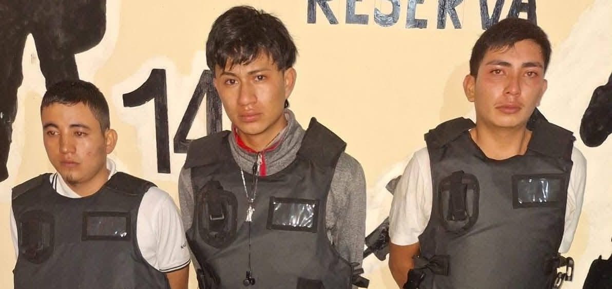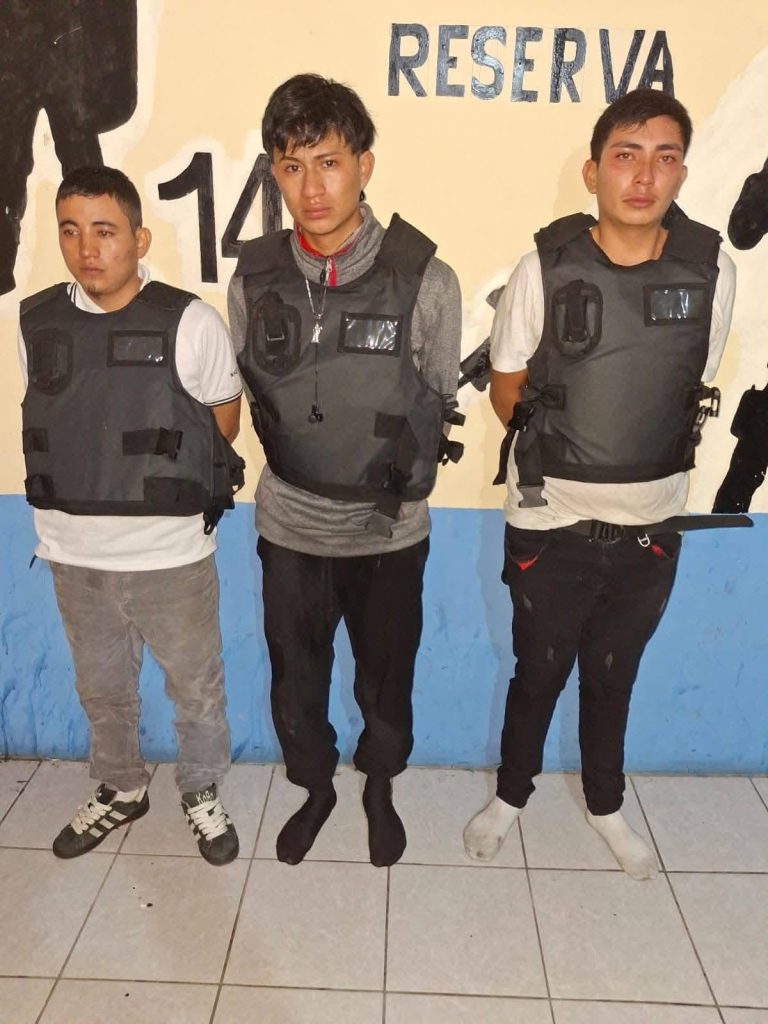 Aron Alexander Pablo Jalal, Alex Abel Vásquez Aguilar y José Felipe Xocop Estrada fueron detenidos esta mañana en la colonia Amparo I, zona 7 capitalina luego de herir de bala a 4 personas en colonia Oten Prado, los testigos aseguraron a los agentes de la comisaría 14 que el comando armado había descendido de dos carros vestidos con chalecos blindados y gorras de DEIC.