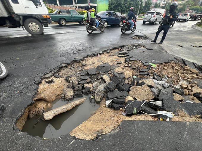 Según la información obtenida en el lugar, ocurrió un hundimiento de la cinta asfáltica como consecuencia del colapso de la línea de drenajes en el sector.