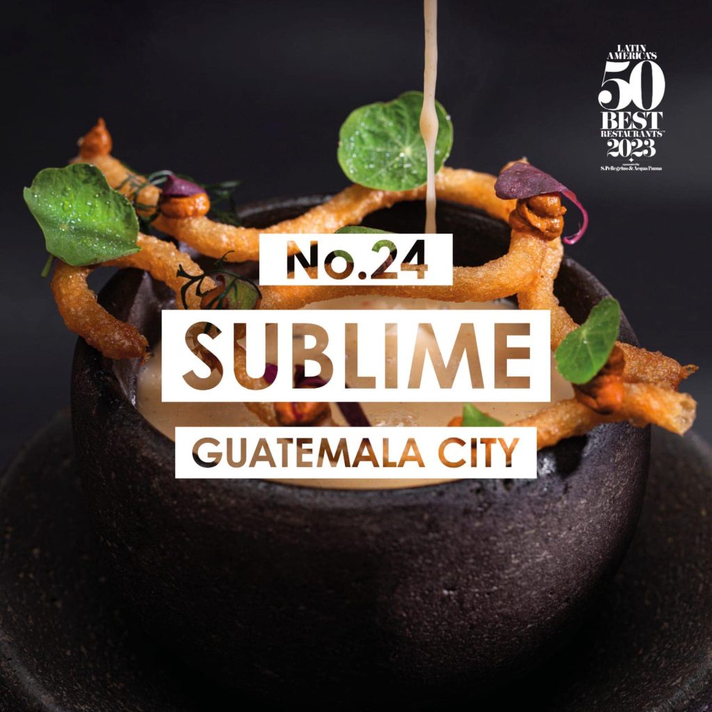 Con esta nominación dentro del ranking de los 50 Mejores Restaurantes de Latinoamérica, también se le adjudica al restaurante Sublime, la nominación como Mejor Restaurante de Guatemala del año.