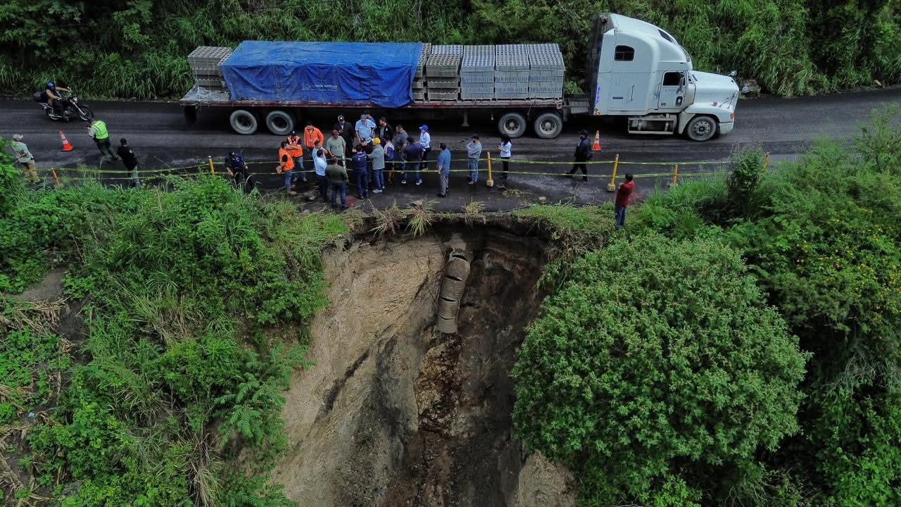 En la RN-19, kilómetro 76, tramo Sansare – Jalapa, se detectó un socavamiento ocasionado por el colapso de una tubería transversal, lo que ha limitado el tránsito en el carril de ascenso.