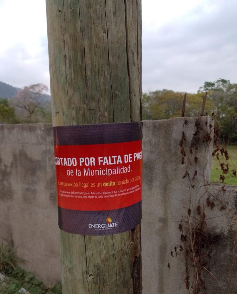 El suministro de electricidad para las lámparas del alumbrado público de Gualán, Zacapa, fue suspendido esta mañana por la distribuidora, como consecuencia de un adeudo de la Municipalidad local cercano a los Q18 millones.