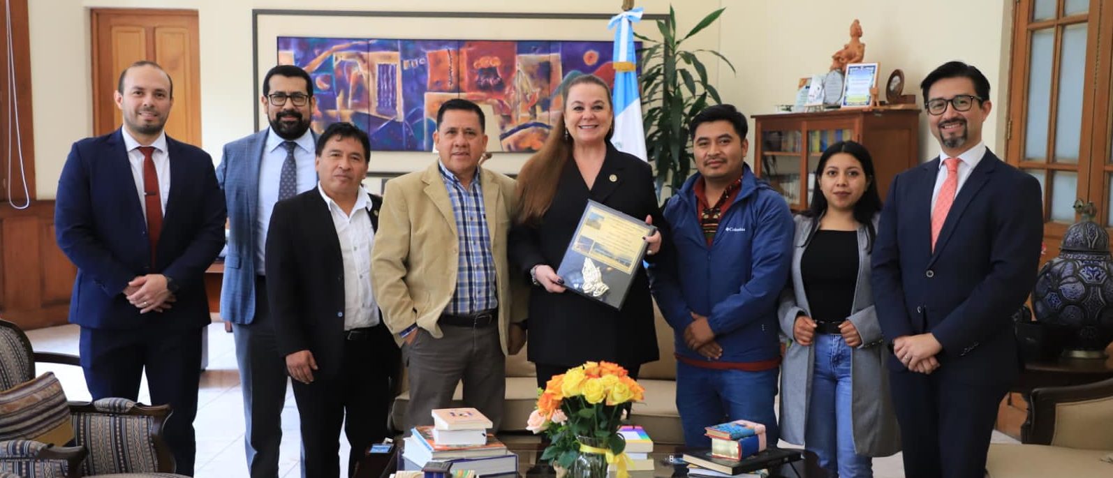 Miembros de la comunidad educativa de la aldea Tochosh, entregaron un reconocimiento a la ministra de Educación Anabella Giracaa, en representación de los más de 40 centros educativos remozados en el municipio de Tajumulco, San Marcos, a través del Programa de Mantenimiento de Edificios Escolares.