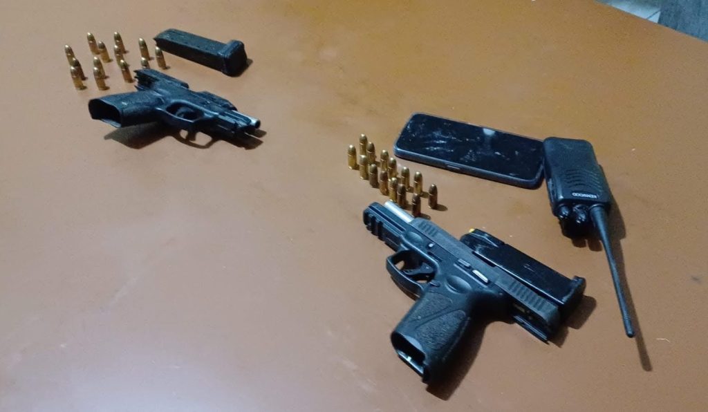 Los PNC al identificar a los sujetos trataron de huir, pero fueron neutralizados, localizándoles dos pistolas marca Taurus, cada una conteniendo una tolva con 13 y 14 municiones y un radio transmisor.