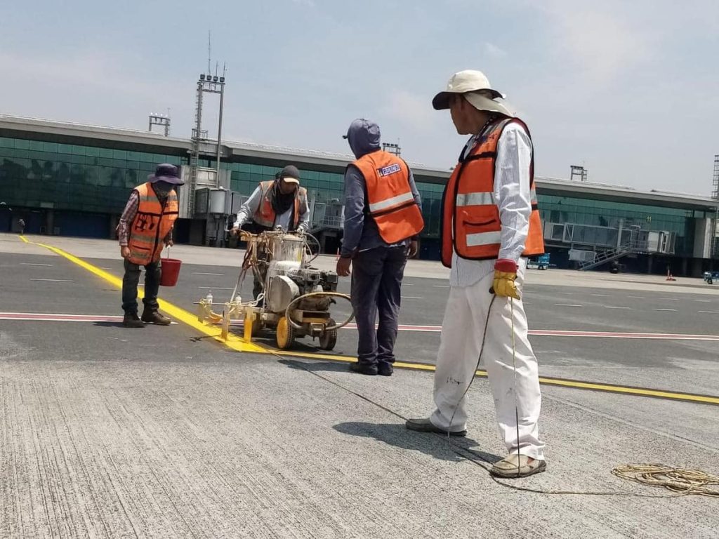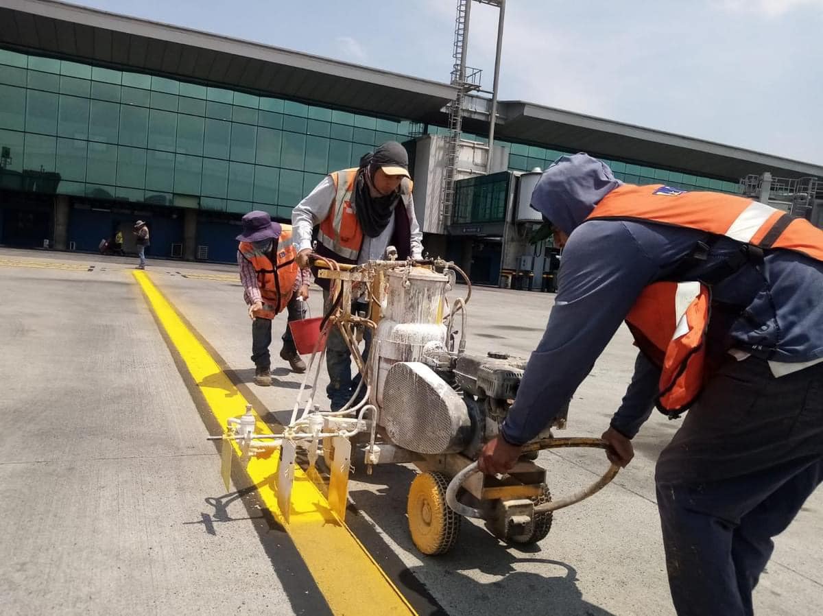 LA AURORA …Personal del departamento de Infraestructura Aeroportuaria realiza trabajos de demarcación de la Plataforma Sur del Aeropuerto Internacional La Aurora.