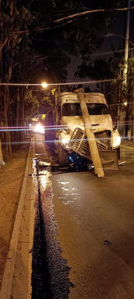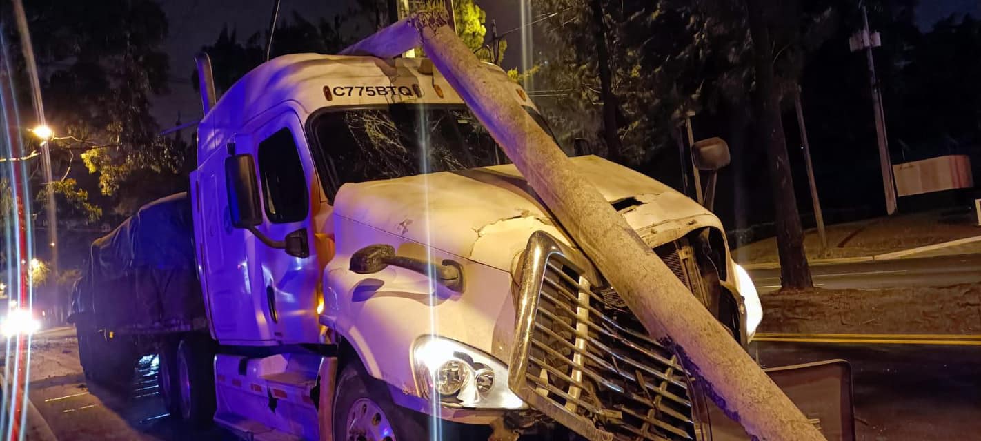 EN PERIFÉRICO SUR…En las primeras horas de este martes un Tráiler derrapa e impacta con poste.de energía eléctrica en el Periférico sur ,entre Majadas y San Jorge lo que genera la paralización del tráfico