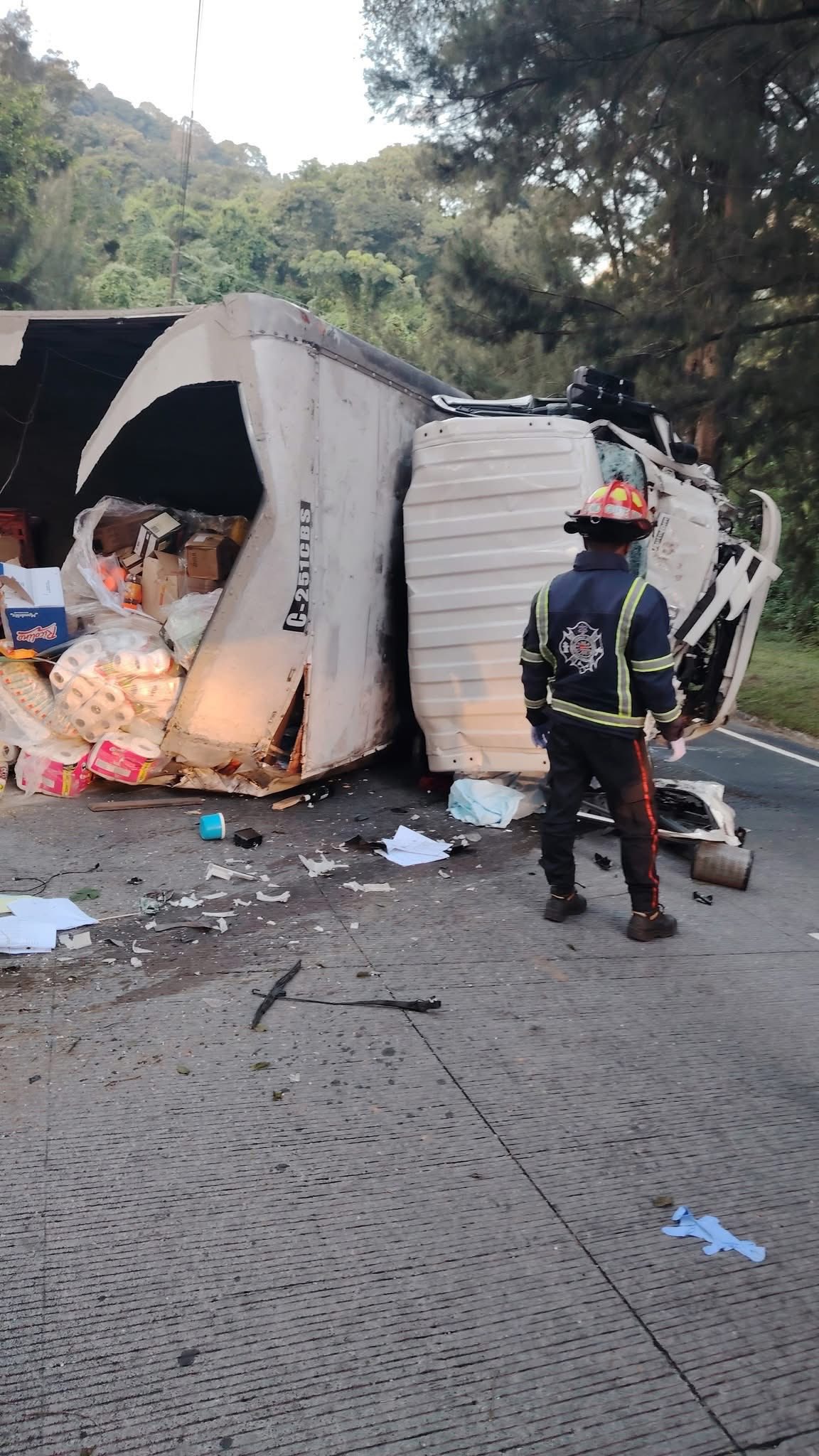 Por causas qué se desconocen volca sobre la cinta asfáltica en el lugar queda una persona de sexo masculino fallecido según reportan los Bomberos Municipales departamentales de santa Lucía Milpas Altas