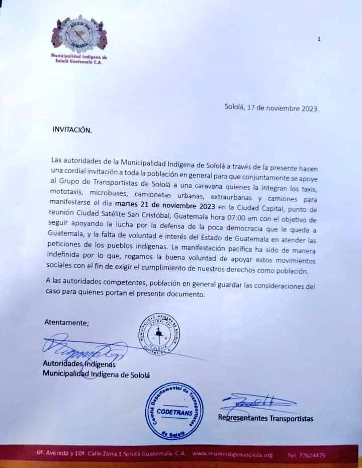 Transportistas del departamento de Sololá zreqlizaran una manifestación pacífica el martes 21 desde las 7:00 de la mañana en la ciudad capital en apoyo a la democracia.