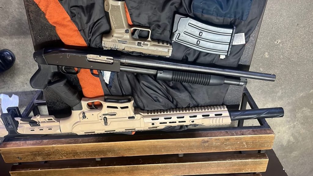 Siguiendo los protocolos de actuación policial ingresan al domicilio reduciendo al orden a los capturados a quienes les incautaron dos escopetas y una pistola con un cargador y 15 municiones útiles, de las cuales no presentaron licencia de portación.