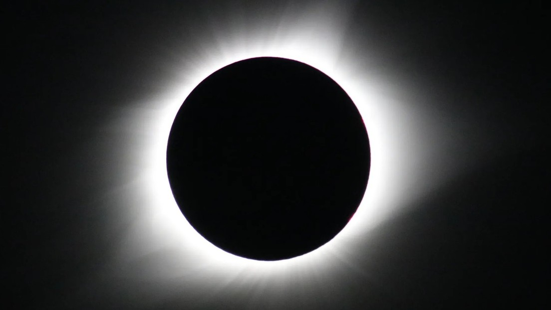 Un eclipse solar total ocurre cuando la Luna se interpone entre el Sol y la Tierra, bloqueando completamente el disco solar. Mientras transcurre el evento, la corona solar es visible a simple vista.