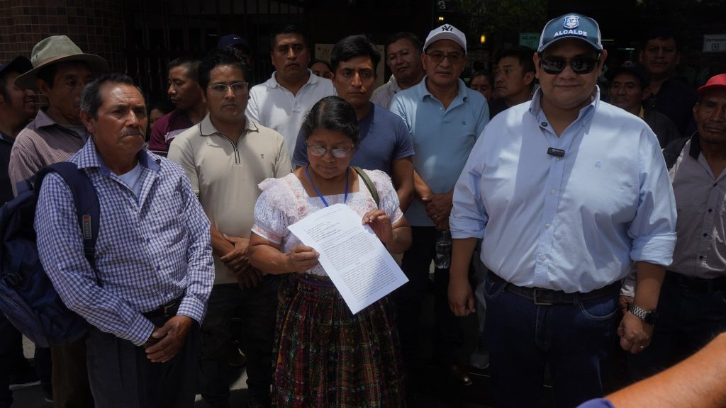 A las afueras del Ministerio de Desarrollo MIDES, el alcalde de Santa Cruz del Quiché Nery Ramírez acompañado por su Concejo y representantes de Consejos Comunitarios de Desarrollo Urbano y Rural – COCODES- del municipio exigieron la presencia del Ministro Abelardo Pinti para dar una solución al seguimiento en la construcción de la planta de tratamiento de aguas residuales, misma que resuelve el 60% de las aguas residuales de la cabecera del municipio.