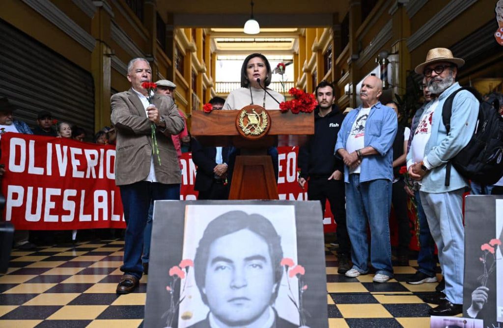 Acompañada de líderes estudiantiles, familiares de Oliverio Castañeda y otras personalidades, la vicepresidenta recordó el período de la guerra interna como algo difícil de olvidar, previo a ratificar las disculpas públicas, como un crimen del Estado sin resolver.
